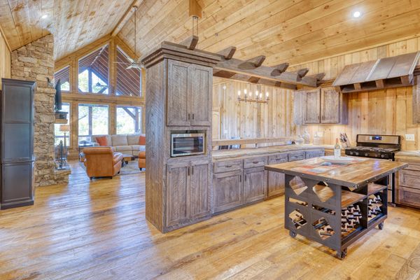 We wanted every space to feel both luxurious and welcoming, with thoughtful details that make your stay unforgettable. The home features three beautiful master suites and one inviting queen bedroom, giving everyone their own private retreat. Each bathroom includes stunning stone showers that bring the natural beauty of the mountains indoors, and the primary master suite features a breathtaking waterfall shower for a true spa-like experience. Upstairs, you can gather around the cozy wood-burning fireplace in the living room, while downstairs offers a second living space with a warm and convenient gas fireplace perfect for spreading out and relaxing. Step outside onto the decks to enjoy the outdoor fireplace, comfortable seating, and a six-person hot tub where you can soak under the stars. The heart of the cabin is the oversized kitchen, fully stocked with appliances, cookware, and utensils, making it easy to prepare everything from a quick breakfast before hitting the trails to a full family dinner. Every detail was chosen to create a space that feels elevated, comfortable, and truly like home in the mountains.